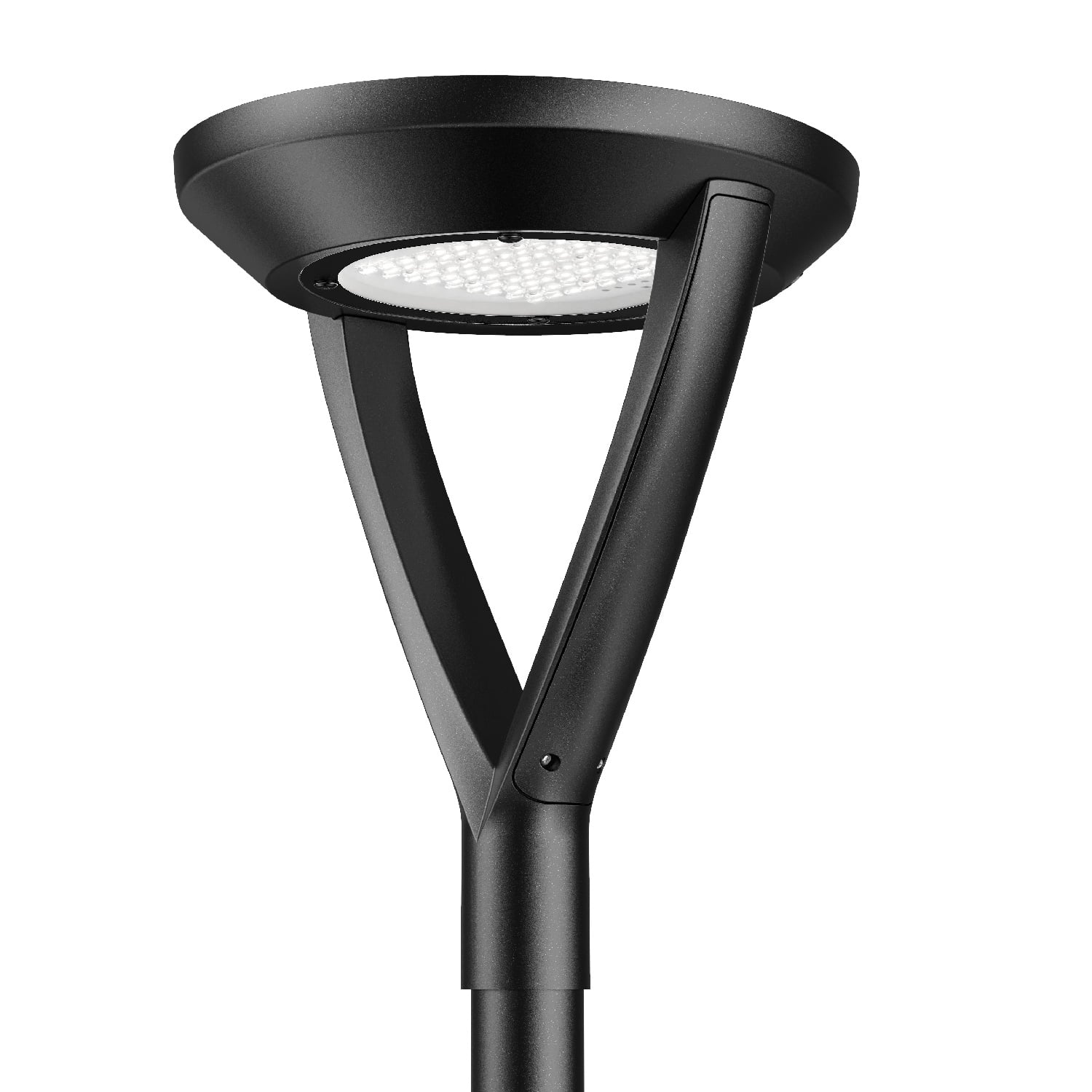 This fixture uses a slip fitter for post top mounting.